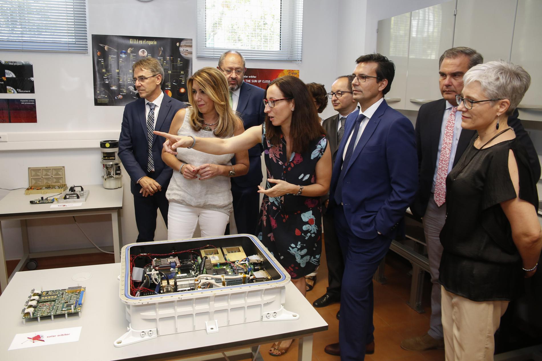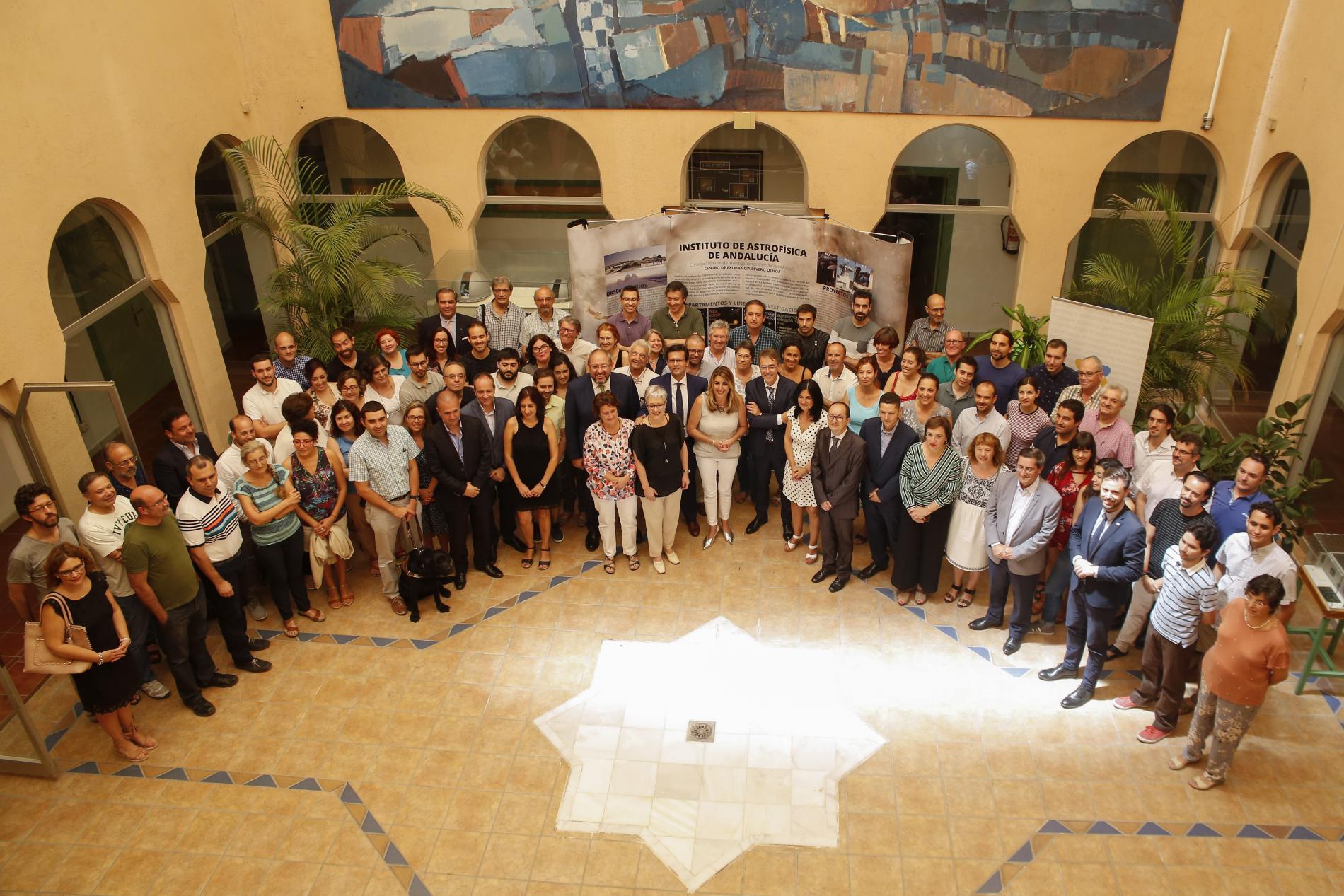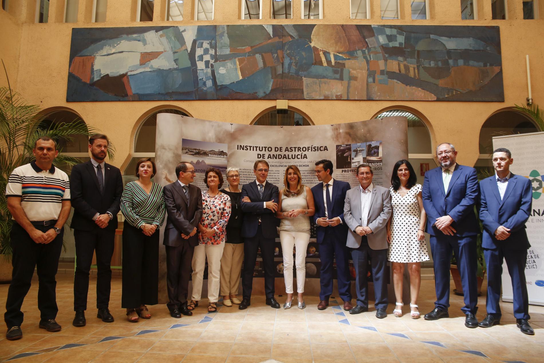 La Presidenta de la Junta de Andalucía, Susana Díaz, visitaba hoy por primera vez el Instituto de Astrofísica de Andalucía, acompañada de Francisco Cuenca, alcalde de Granada, y José Entrena, presidente de la Diputación. En el acto, motivado por la concesión de la acreditación Severo Ochoa al IAA, la Presidenta reiteró su apoyo a la investigación y el desarrollo tecnológico en Andalucía, para que estos fueran un sello de identidad de la comunidad autónoma.