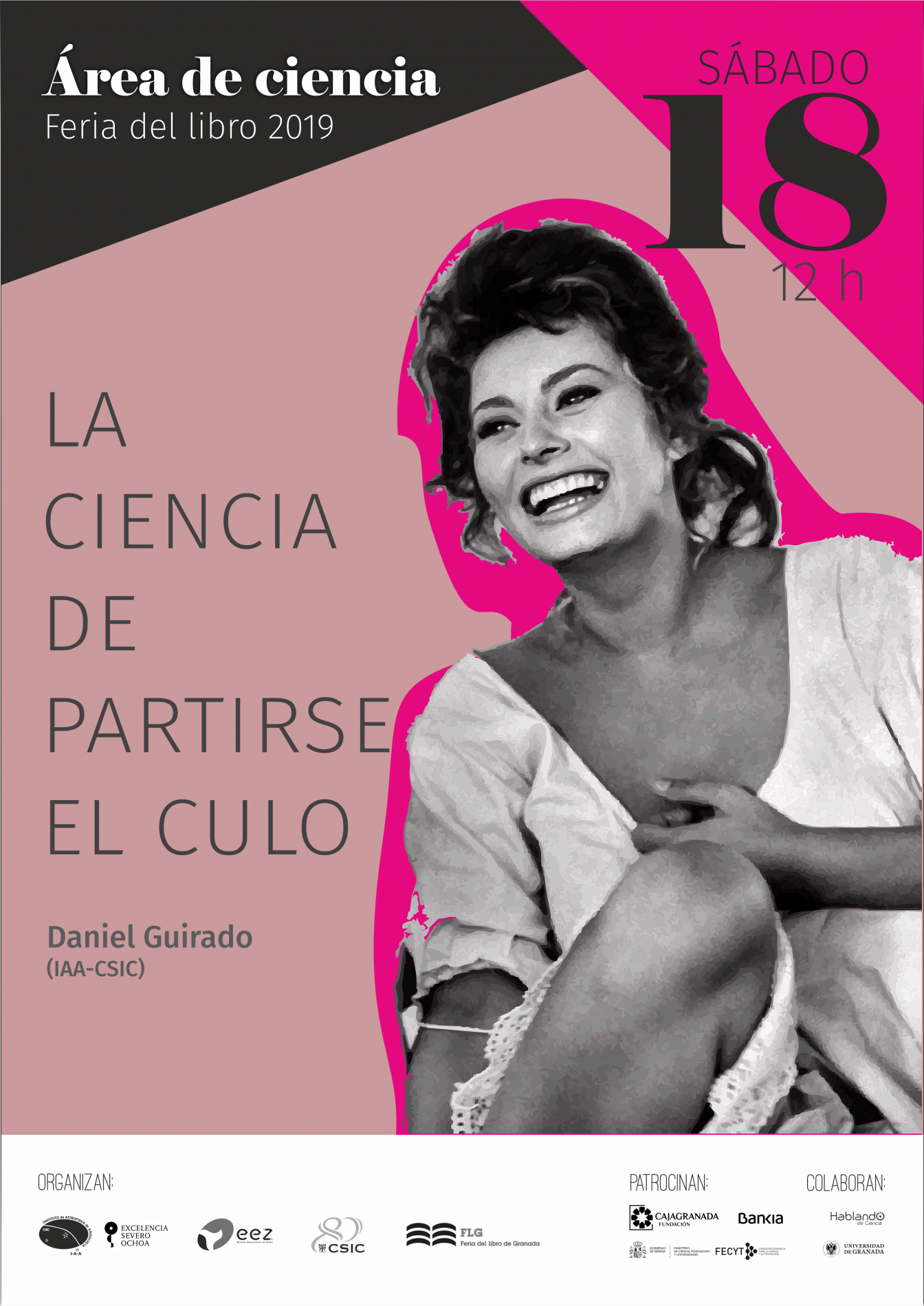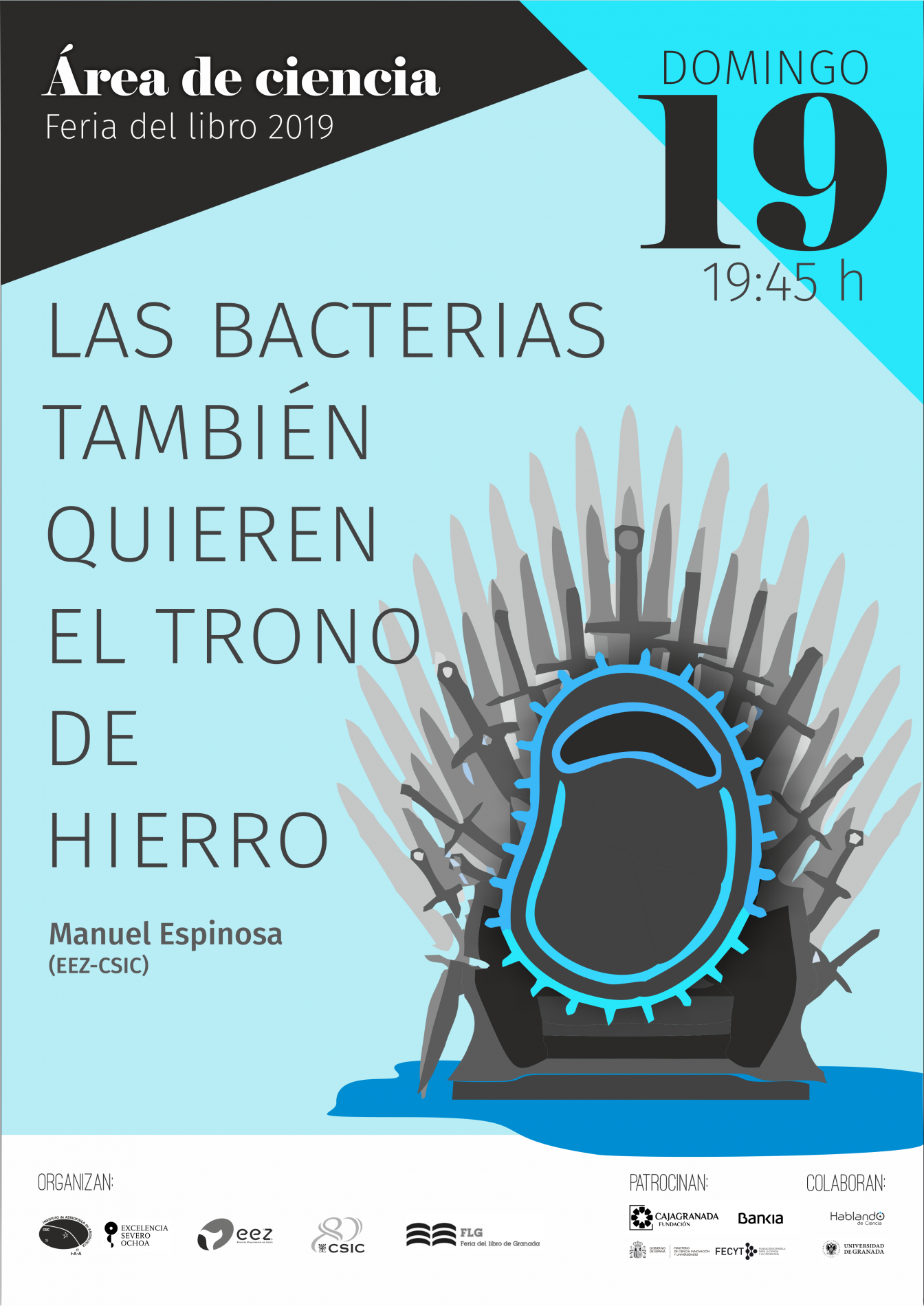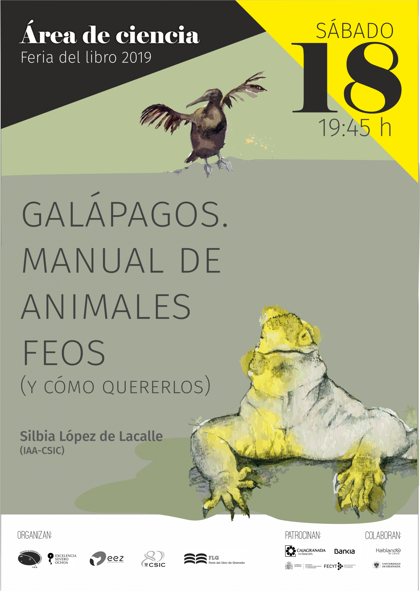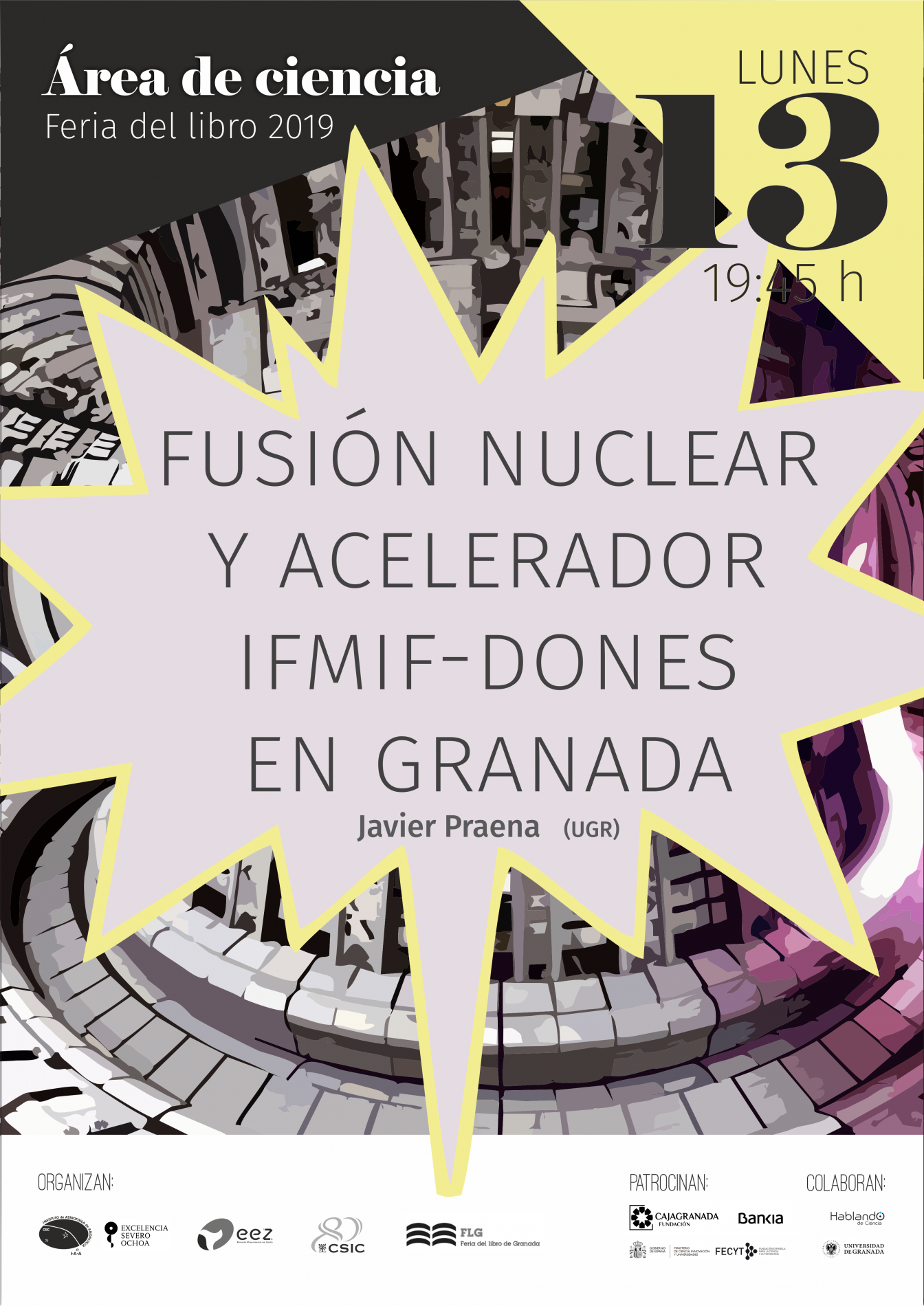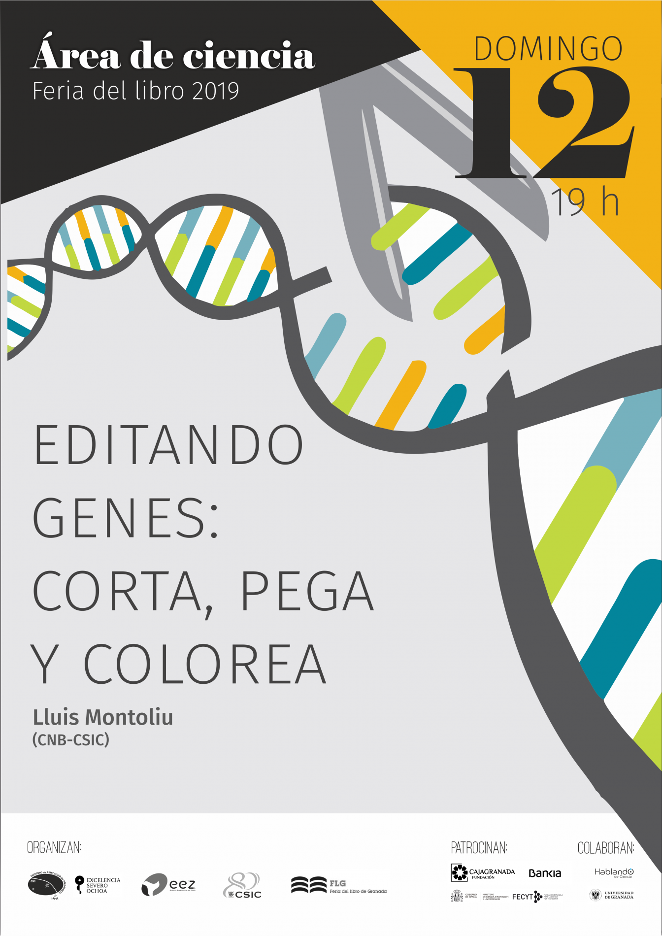 Organizada por el Instituto de Astrofísica de Andalucía (IAA-CSIC), la Estación Experimental del Zaidín (EEZ-CSIC), la Vicepresidencia Adjunta de Cultura Científica CSIC y la propia Feria del Libro de Granada, con el patrocinio de CajaGranada Fundación - Bankia y Fundación Española de Ciencia y Tecnología (FECYT) - Ministerio de Ciencia, Innovación y Universidades, y la colaboración de la Asociación “Hablando de Ciencia” y la Universidad de Granada (UGR), este año la programación científica de la feria del libro se articulará en torno a la Tabla Periódica, con motivo de su 150 aniversario.