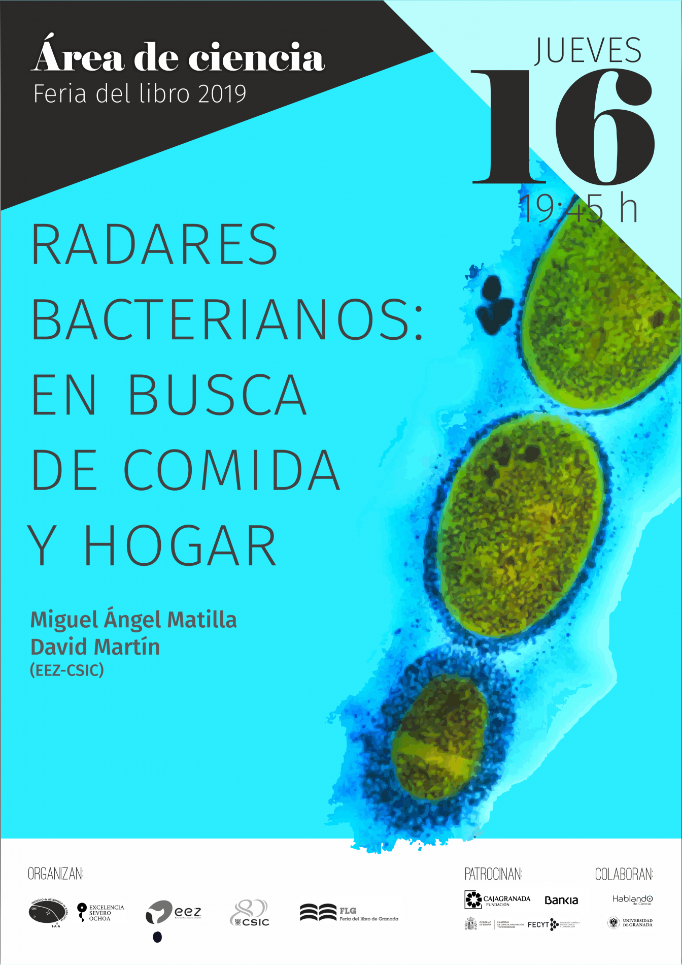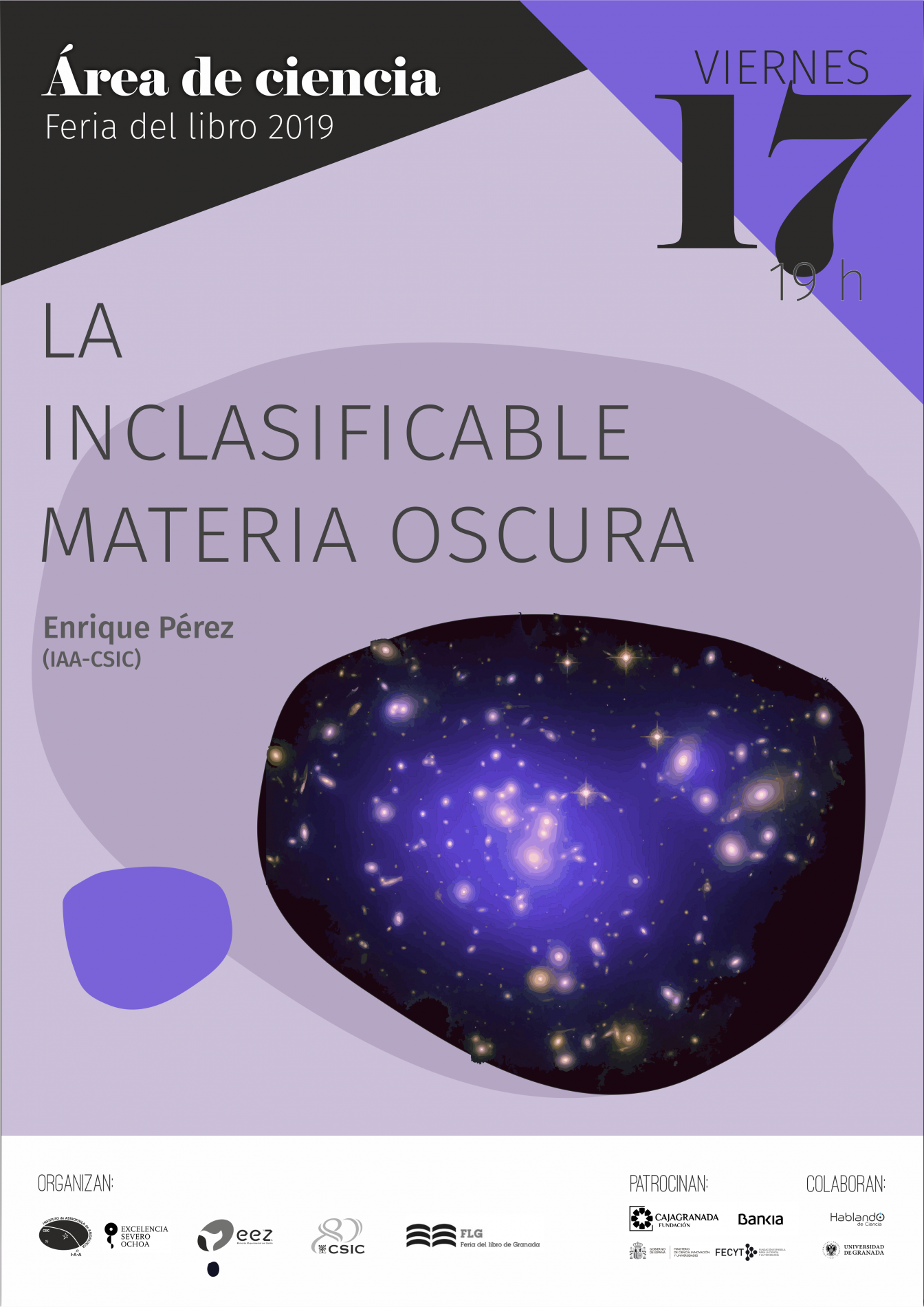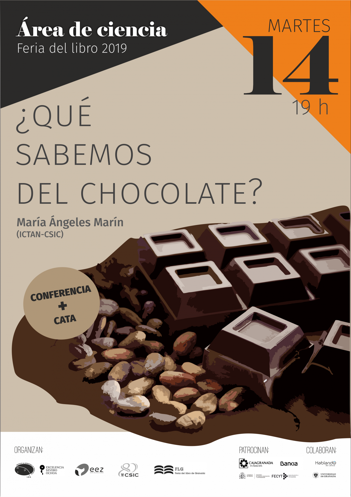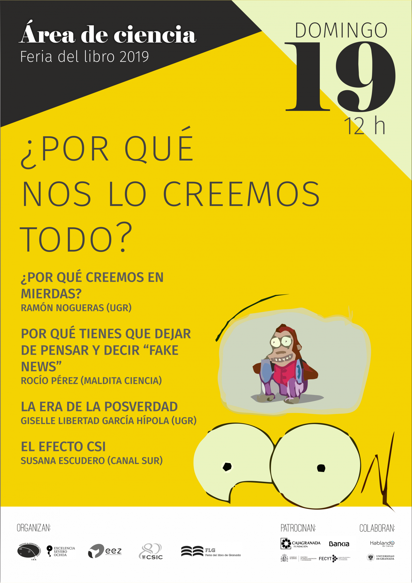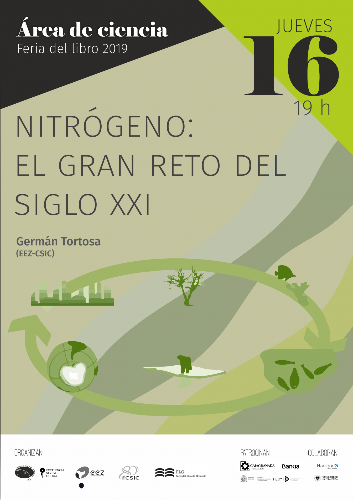 Organizada por el Instituto de Astrofísica de Andalucía (IAA-CSIC), la Estación Experimental del Zaidín (EEZ-CSIC), la Vicepresidencia Adjunta de Cultura Científica CSIC y la propia Feria del Libro de Granada, con el patrocinio de CajaGranada Fundación - Bankia y Fundación Española de Ciencia y Tecnología (FECYT) - Ministerio de Ciencia, Innovación y Universidades, y la colaboración de la Asociación “Hablando de Ciencia” y la Universidad de Granada (UGR), este año la programación científica de la feria del libro se articulará en torno a la Tabla Periódica, con motivo de su 150 aniversario.