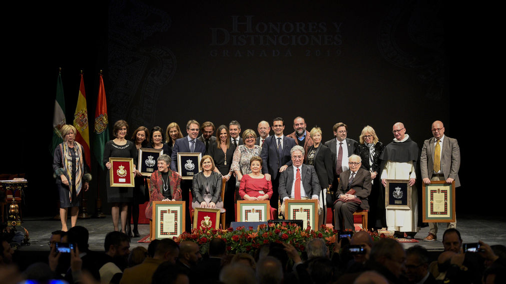 El teatro municipal Isabel La Católica acogió ayer noche, coincidiendo con la festividad del patrón de Granada San Cecilio, el acto de entrega de los honores y distinciones de la ciudad a personas e instituciones que, con su buen hacer, su labor y su ejemplo, contribuyen al engrandecimiento del nombre de Granada y a su promoción y reconocimiento exterior.